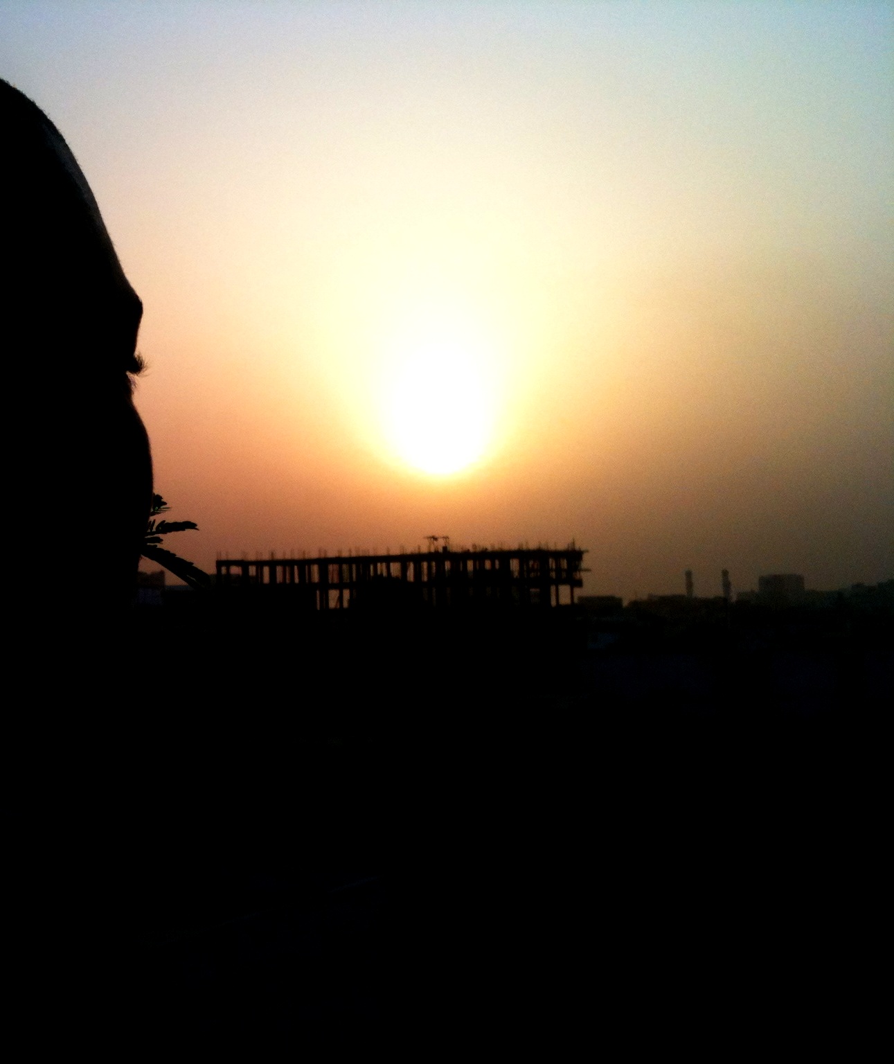 Le ciel est blanc. Il n’est jamais bleu le matin. L’aube et l’orée sont très différents de chez nous, en zone plus nordiques. Chez nous le jour se lève et se couche pendant une heure de temps. Nous pouvons voir le ciel s’illuminer bien avant et après l’apparition du soleil. Ici c’est très différent : il fait noir il fait noir et tout d’un coup, PAW! Il fait clair… de même le jour disparaît d’un coup! En dix minutes, il fait noir.