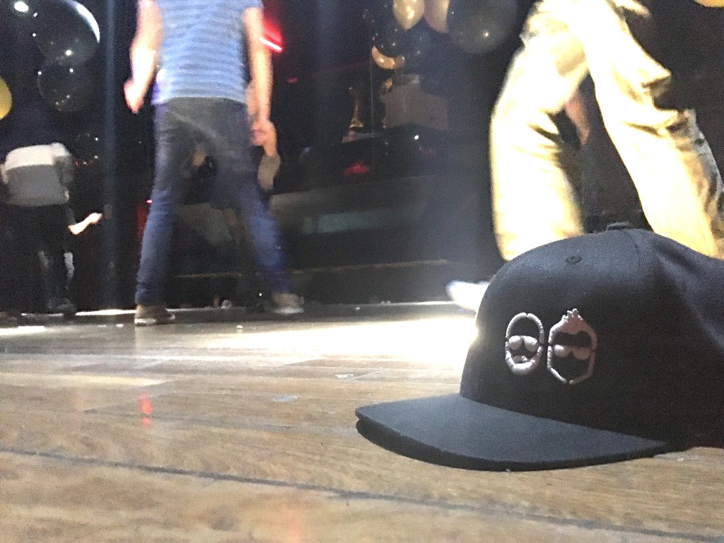 Dans un mouvement de danse, je suis au sol, à genoux, lumières noires soudaines, black flash, casquette sur les yeux, foulard rose extensible full extension, j’ouvre les yeux vers le haut et j’ai un mec au dessus de moi qui me fait des genre d’incantations de voudous avec ses mains, habillé en noir, casquette, je lui sourit et embarque dans le jeux, mais soudain je réalise que c’est Pablo lui même qui est descendu s’amuser sur le plancher! Son sourire du moment valait pour moi tout l’or du monde.