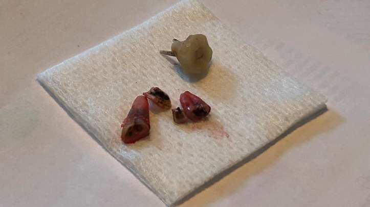 Une vielle molaire morte avec traitement de canal mega fini qu’il a failli extraire à coups de grandes pressions… sérieux je pensais bien qu’elle allait me décrocher la mâchoire! Lol