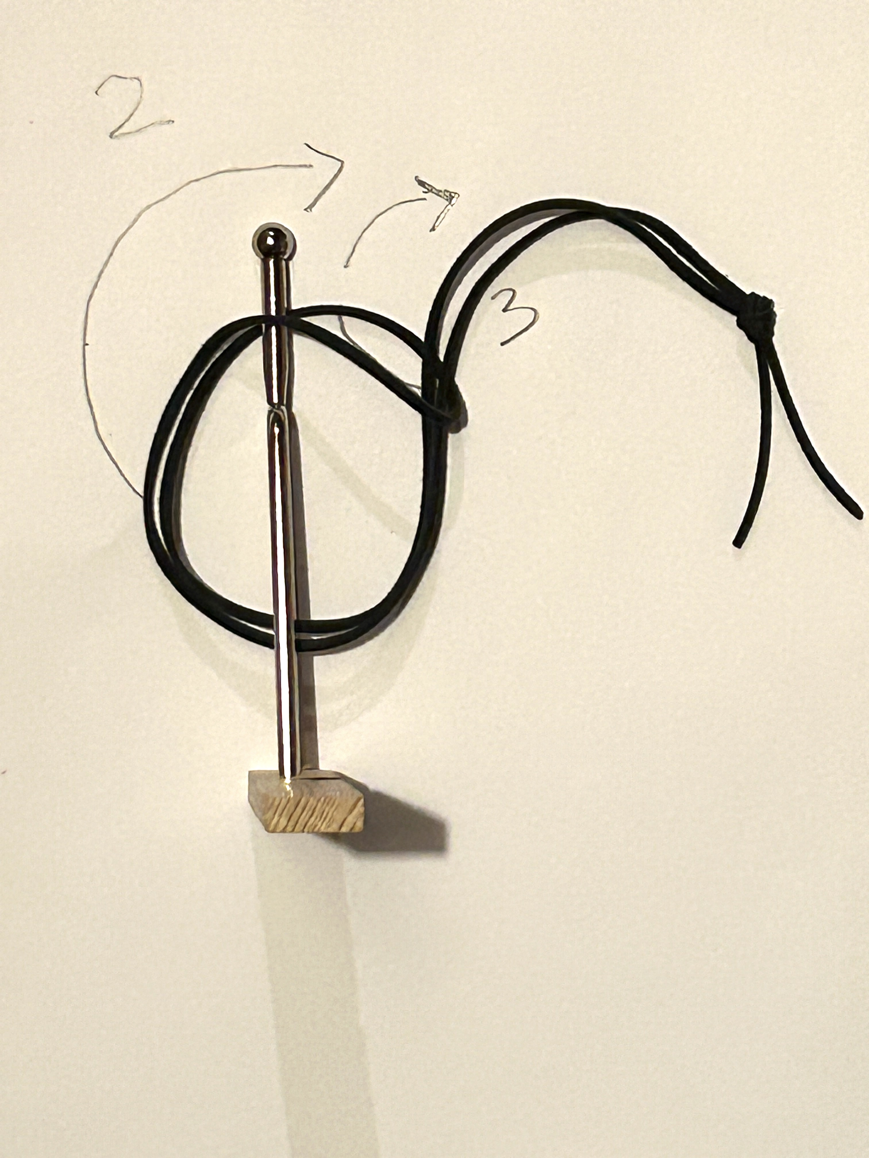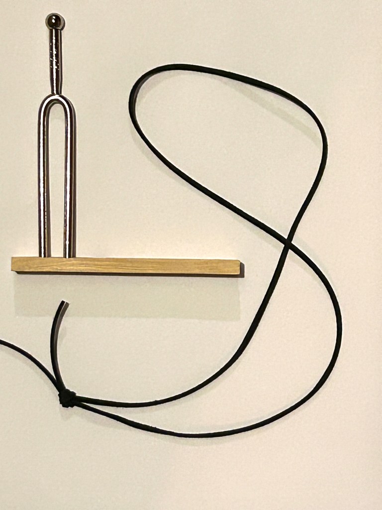 START: BRING YOUR TUNING FORK AND A SOFT LEATHER CORD OR CHAIN WITH A RECOMMENDED LENGTH OF 22 INCHES, UP TO 30 INCHES (56 CM TO 80 CM). // DÉPART : AYEZ EN MAIN VOTRE DIAPASON ET UNE CORDELETTE EN CUIR SOUPLE OU UNE CHAINE D’UNE LONGEUR RECOMMANDÉ DE 22 POUCES, JUSQU’À 30 POUCES (56 CM À 80 CM)