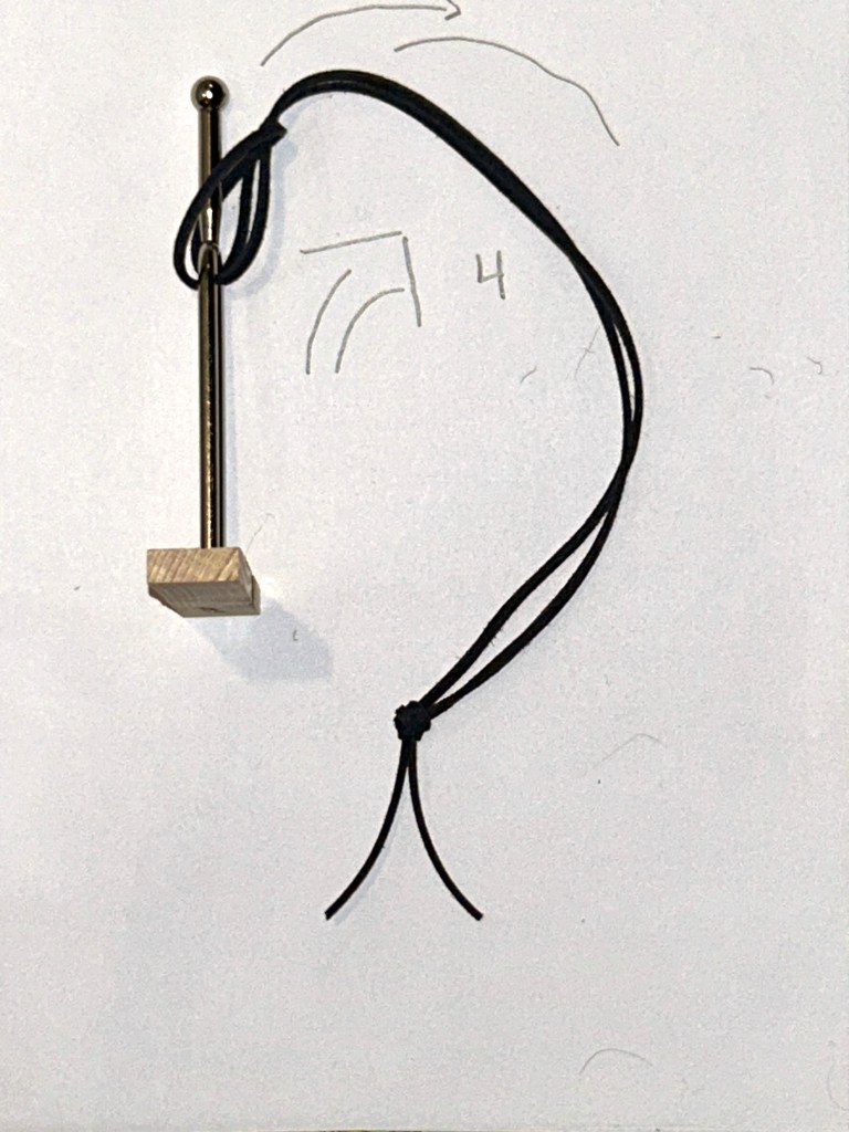 STEP 4: CAREFULLY PULL THE CORD, SLIDING THE LOOP OVER THE SHOULDER OF THE TUNING FORK’S « HEAD ». // ETAPE 4 : DÉLICATEMENT, TIRER LE CORDEAU EN GLISSANT LA BOUCLE DE CHAQUE CÔTÉ DE L’ÉPAULEMENT DE LA « TÊTE » DU DIAPASON