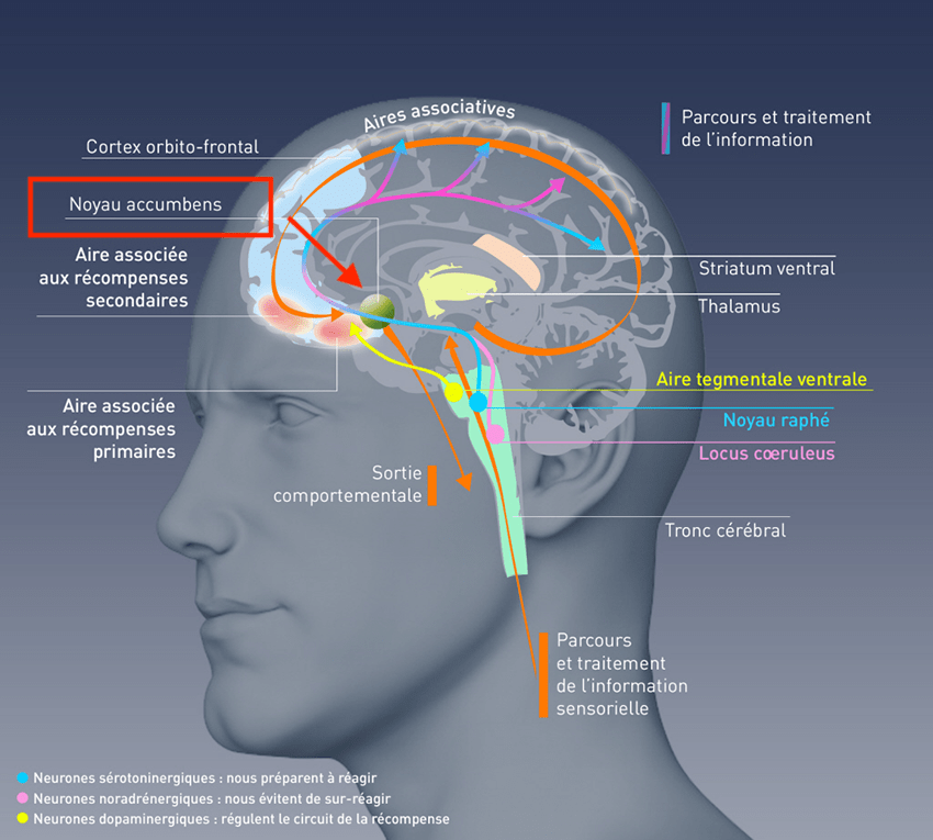 Nos cerveaux sont tous faits semblables, c’est-à-dire en composante mécanique dopaminergique. Et TOUT votre fonctionnement motivationnel est en fait appuyé sur le circuit de la récompense… (reward system – https://fr.wikipedia.org/wiki/Système_de_récompense )