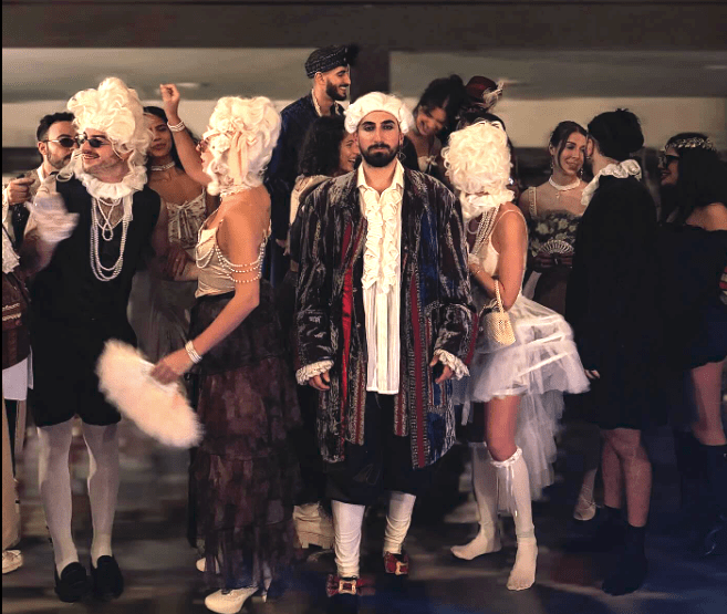 The space filled with fantastic characters — monsters, samurais, exotic beauties, and the entire court of the King of France, decked out in wigs, tricorn hats, and breathtaking redingotes, complete with silk stockings and buckled shoes.