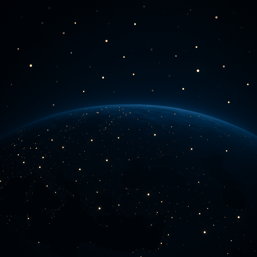 Imaginez la planète vue de loin : une immense sphère sombre, et tout autour, des points de lumière éparpillés. Certains brillent fort, d’autres pulsent doucement, d’autres frémissent à peine.